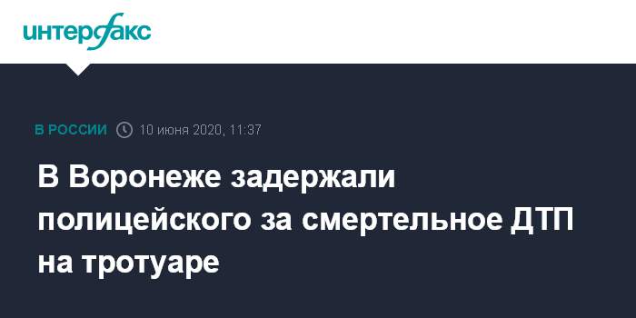 Москва. 10 июня. INTERFAX.RU - Воронежские следователи задержали полицейского, который вечером во вторник сбил на тротуаре трех человек, один их которых погиб.