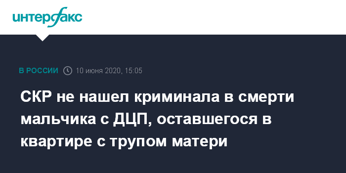 СКР не нашел криминала в смерти мальчика с ДЦП, оставшегося в квартире с трупом матери