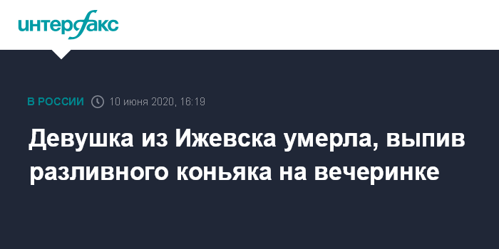 Москва. 10 июня. INTERFAX.RU - В Ижевске возбудили уголовное дело о гибели 17-летней девушки, которая умерла, выпив коньяк на вечеринке. Дело расследуется по статье о причинении смерти по неосторожности, сообщили в управлении СКР по Удмуртии.