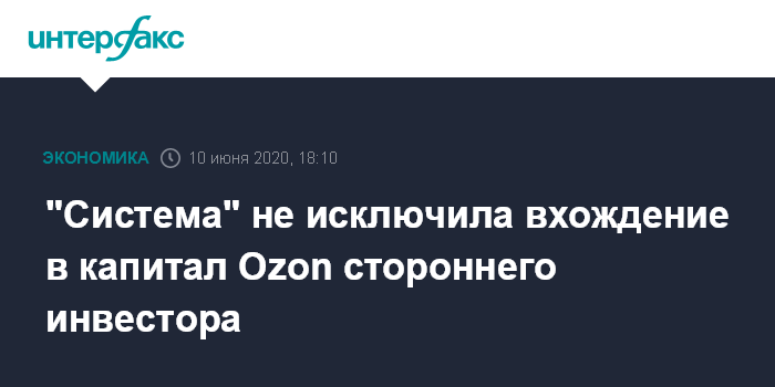 Москва. 10 июня. INTERFAX.RU - ПАО АФК "Система" ведет поиск инвестора в капитал Ozon, который своими инвестициями поддержал бы рост интернет-рителера, а также позволил бы ему развивать логистические мощности, сообщил финансовый директор АФК Владимир Травков на телефонной конференции с инвесторами и аналитиками.