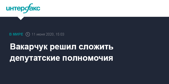 Москва. 11 июня. INTERFAX.RU - Музыкант, народный депутат и член политсовета партии "Голос" Святослав Вакарчук заявил на брифинге, что подал в Верховную раду заявление о сложении депутатских полномочий. Уходить из политики или из партии он не собирается.