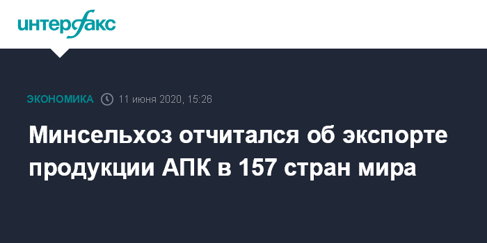 Минсельхоз отчитался об экспорте продукции АПК в 157 стран мира