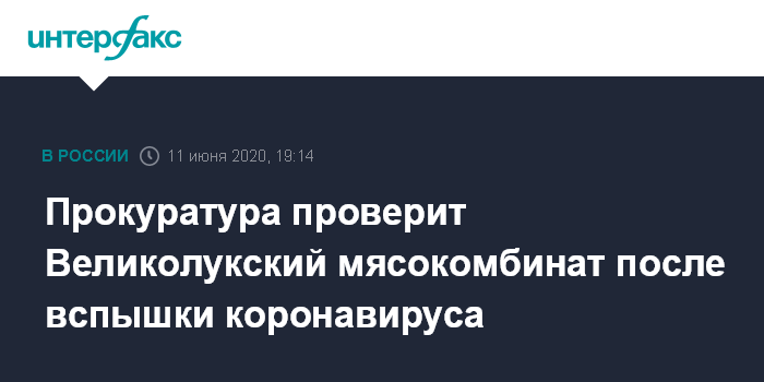 Москва. 11 июня. INTERFAX.RU - Генпрокуратура сообщила, что поручила проверить публикации о возникновении очага коронавирусной инфекции в ОАО "Великолукский мясокомбинат".