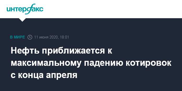 Москва. 11 июня. INTERFAX.RU - Котировки нефти продолжают заметно дешеветь на новых опасениях о появлении избытка предложения при слабом спросе. Падение цен по итогам дня может стать максимальным с 27 апреля, свидетельствуют данные FactSet.