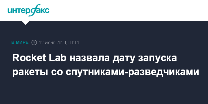 Москва. 11 июня. INTERFAX.RU - Отмененный в четверг из-за сильного ветра запуск на орбиту ракеты Electron с тремя спутниками в интересах Национального управления военно-космической разведки США (NRO), а также с малыми космическим аппаратами NASA и австралийского университета, перенесен на субботу, сообщила американская частная компания-разработчик носителя Rocket Lab.