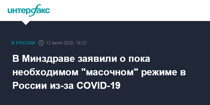 Москва. 12 июня. INTERFAX.RU - Масочный режим в России должен сохраняться в качестве меры защиты от нового коронавируса, пока рано говорить о том, когда можно будет снять маски, заявил министр здравоохранения Михаил Мурашко.