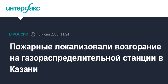 Ранее сообщалось, что 12 июня в результате взрыва на газораспределительной станции в Казани погиб один человек, двое госпитализированы и находятся в состоянии средней степени тяжести.