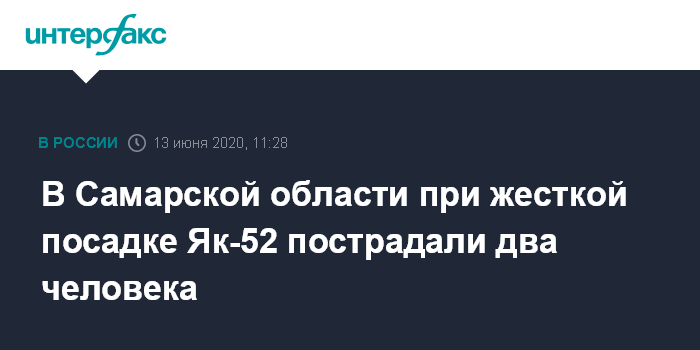 Москва. 13 июня. INTERFAX.RU - Два человека пострадали при жесткой посадке легкомоторного самолета Як-52 в Самарской области, сообщил в субботу "Интерфаксу" информированный источник.