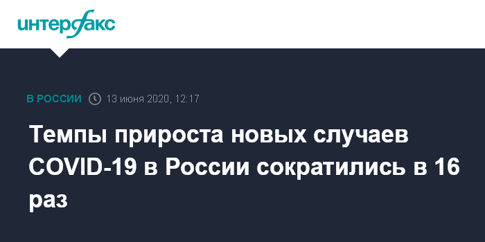 Москва. 13 июня. INTERFAX.RU - Вице-премьер Татьяна Голикова заявила о существенном сокращении темпа ежесуточного прироста новых инфицированных COVID-19.