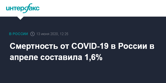 Смертность от COVID-19 в России в апреле составила 1,6%