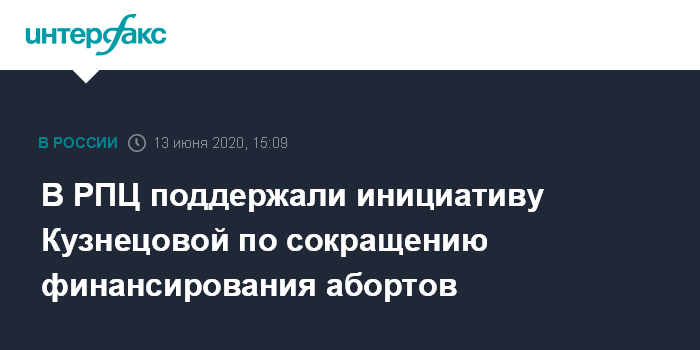Москва. 13 июня. INTERFAX.RU - В Русской православной церкви поддержали предложения детского омбудсмена РФ Анны Кузнецовой сократить финансирование клиник, которые проводят аборты, и ограничить продажу абортивных препаратов.