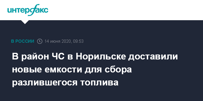 Москва. 14 июня. INTERFAX.RU - В зону ликвидации ЧС в Норильске доставлены дополнительные емкости для сбора загрязненной нефтепродуктами воды, сообщили "Интерфаксу" в воскресенье в пресс-службе МЧС России.