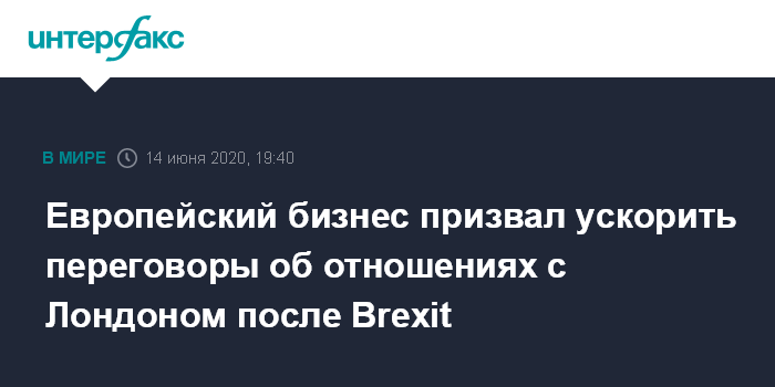 Москва. 14 июня. INTERFAX.RU - Европейский бизнес торопит политиков заключить надежное и всеобъемлющее соглашение о новых отношениях между Евросоюзом и Великобританией.