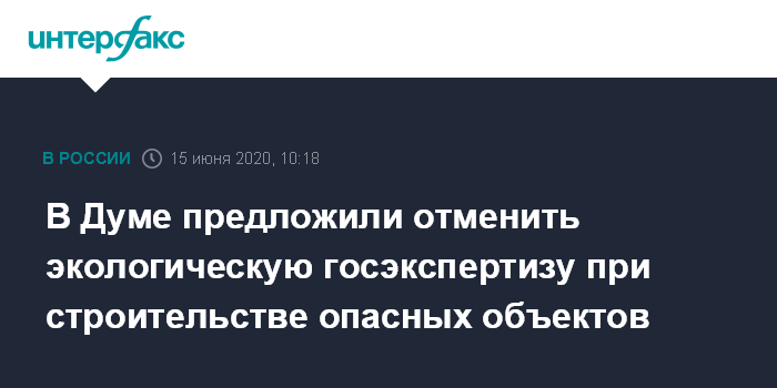 Предложение проводить экологическую экспертизу именно в рамках Главгосэкспертизы "для ускорения процедур строительства" содержится и в антикризисном плане правительства. Там указано, что соответствующий законопроект должен быть принят в июле.