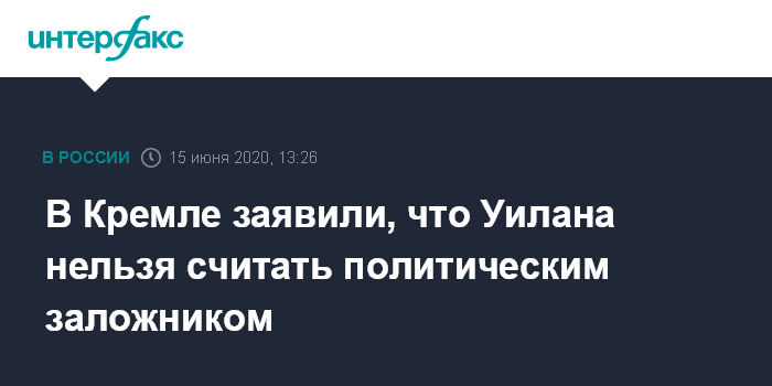"Нет, невозможно. Он осужден решением суда, и в решении суда все говорится. Ему были предъявлены обвинения, которые были доказаны в суде и приняты судом", - сказал Песков журналистам в понедельник, отвечая на вопрос, возможно ли считать Уилана политическим заложником.