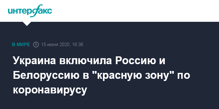 Москва. 15 июня. INTERFAX.RU - Министерство здравоохранения Украины обнародовало список стран так называемой красной зоны, после прибытия из которых необходимо пройти обязательную обсервацию; в этом перечне, в частности, оказались Россия и Белоруссия.