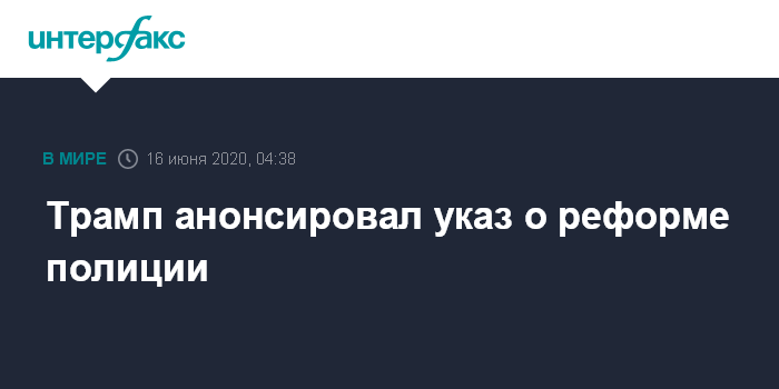 Москва. 16 июня. INTERFAX.RU - Президент США Дональд Трамп во вторник представит исполнительный указ о реформе полиции на фоне растущих призывов к действиям после гибели от рук полицейских афроамериканца Джорджа Флойда.