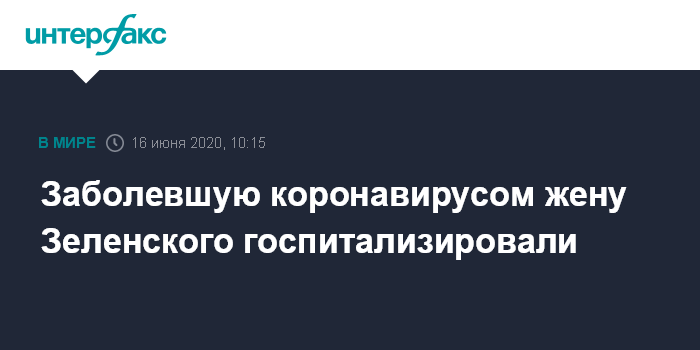 Москва. 16 июня. INTERFAX.RU - Супругу президента Украины Владимира Зеленского Елену поместили в одну из больниц Киева, сообщает пресс-служба Офиса президента.