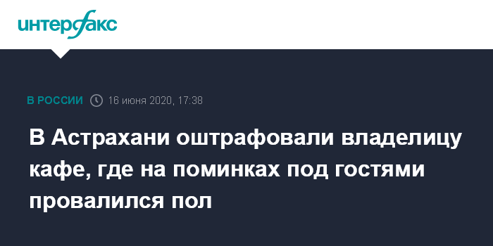 Москва. 16 июня. INTERFAX.RU - Трусовский районный суд Астрахани оштрафовал владелицу кафе "Мечта", где во время поминок несколько гостей провалились в подвал и получили травмы.