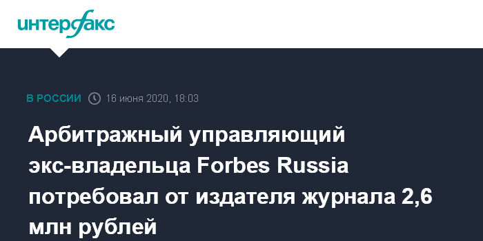 Арбитражный управляющий экс-владельца Forbes Russia потребовал от издателя журнала 2,6 млн рублей