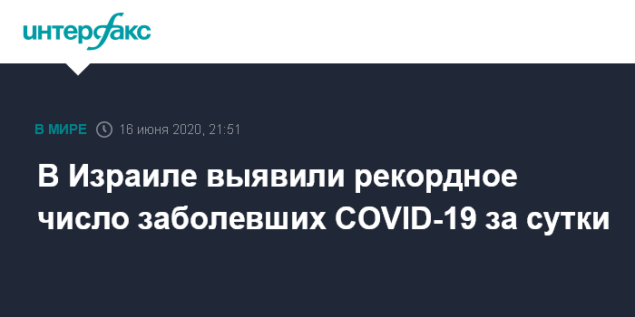 Москва. 16 июня. INTERFAX.RU - В Израиле за последние сутки зафиксировали рекордно высокое число заражений COVID-19 с конца апреля, пишет The Times of Israel.