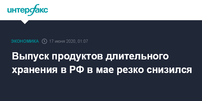 Москва. 17 июня. INTERFAX.RU - Производство в РФ некоторых продуктов длительно хранения, которые "разлетались" с полок магазинов из-за ажиотажного спроса в марте-апреле, в мае резко снизилось из-за упавшего спроса, покупатели проедают запасы.