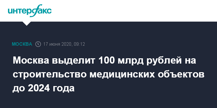 Москва выделит 100 млрд рублей на строительство медицинских объектов до 2024 года