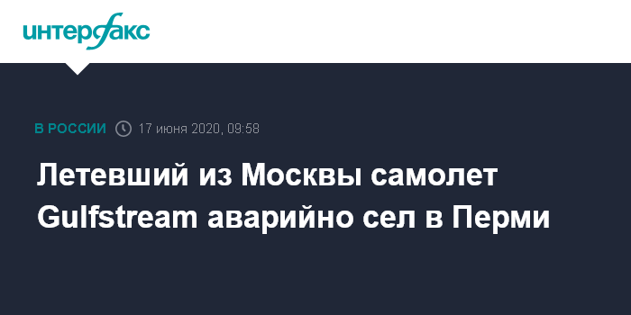 Москва. 17 июня. INTERFAX.RU - Самолет Gulfstream с 45 пассажирами на борту аварийно сел в Перми, сообщил "Интерфаксу" информированный источник.