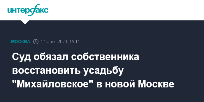 Суд обязал собственника восстановить усадьбу "Михайловское" в новой Москве