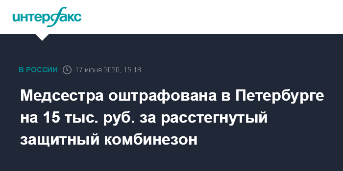Медсестра оштрафована в Петербурге на 15 тыс. руб. за расстегнутый защитный комбинезон