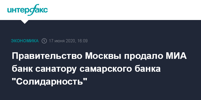 Правительство Москвы продало МИА банк санатору самарского банка "Солидарность"