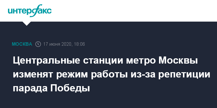 Москва. 17 июня. INTERFAX.RU - Шесть центральных станций московской подземки из-за репетиции парада Победы вечером в среду, 17 июня, изменят режим работы, сообщили в столичном метрополитене.
