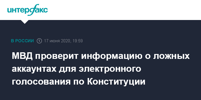 Ранее заместитель председателя МГИК Дмитрий Реут сообщил "Интерфаксу", что Мосгоризбирком просит ГУ МВД по Москве немедленно проверить информацию СМИ о создании ложных аккаунтов для дистанционного электронного голосования по поправкам в Конституцию.
