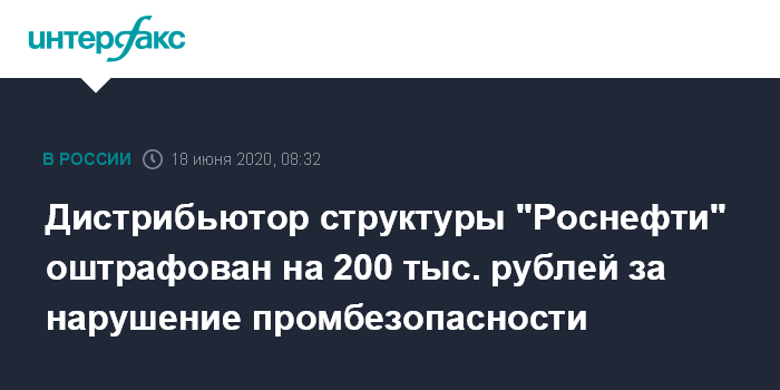 Дистрибьютор структуры "Роснефти" оштрафован на 200 тыс. рублей за нарушение промбезопасности