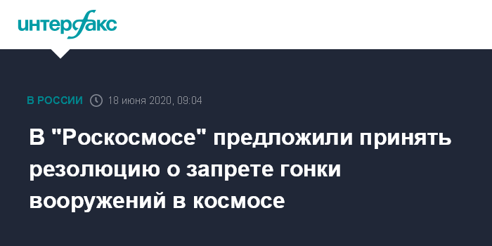 Москва. 18 июня. INTERFAX.RU - "Роскосмос" осуждает стратегию космической обороны, разработанную Пентагоном, и предлагает принять резолюцию о предотвращении гонки вооружений в космосе, заявил через пресс-службу замгендиректора госкорпорации Сергей Савельев.