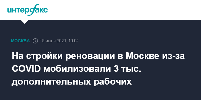 На стройки реновации в Москве из-за COVID мобилизовали 3 тыс. дополнительных рабочих