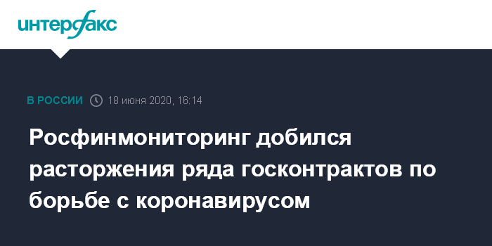 Росфинмониторинг добился расторжения ряда госконтрактов по борьбе с коронавирусом
