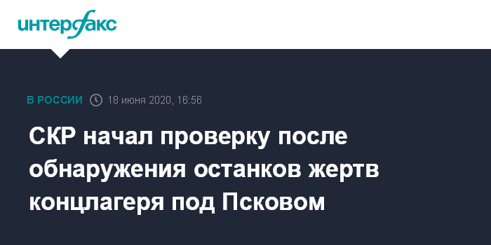 Москва. 18 июня. INTERFAX.RU - В Псковской области проводится проверка по факту обнаружения захоронения мирных граждан, погибших от рук нацистов в годы Великой Отечественной войны в концлагере Моглино, сообщает пресс-служба СКР в четверг.