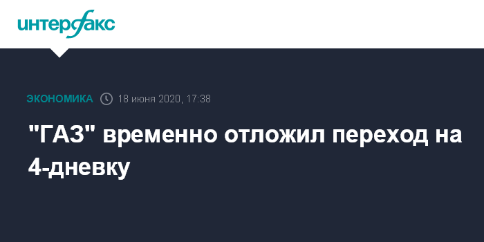 Москва. 18 июня. INTERFAX.RU - Горьковский автозавод ("ГАЗ", Нижний Новгород, входит в одноименную группу) временно отложил переход на 4-дневную рабочую неделю, будет оценивать ситуацию в июле после корпоративного отпуска.