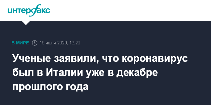 "Результаты, подтвержденные в двух разных лабораториях с использованием двух разных методов, показали присутствие РНК SARS-COV-2 (нового типа коронавируса - ИФ) в образцах, взятых в Милане и Турине 19 декабря 2019 года, а также в Болонье 29 января 2020 года", - говорится в заявлении представителя департамента окружающей среды и здравоохранения ISS Джузеппины Ла Россы.