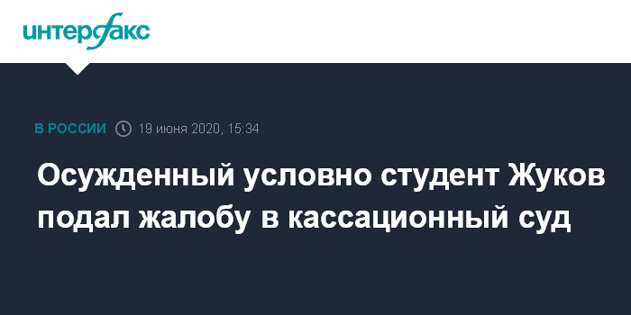 Москва. 19 июня. INTERFAX.RU - Защита студента ВШЭ Егора Жукова, осужденного на три года условно за призывы к экстремистской деятельности, подала в кассационный суд жалобу с просьбой признать его невиновным.