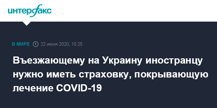 Москва. 22 июня. INTERFAX.RU - Иностранцам, въезжающим на Украину, необходимо иметь страховой полис, покрывающий лечение коронавируса, сообщил министр здравоохранения Украины Максим Степанов.