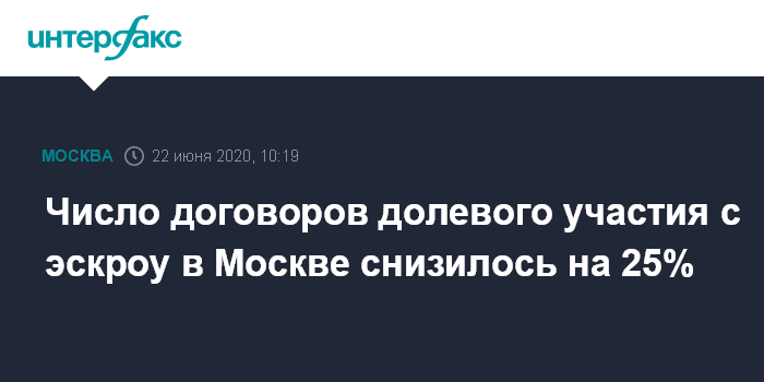 Число договоров долевого участия с эскроу в Москве снизилось на 25%