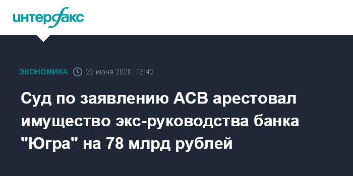 Суд по заявлению АСВ арестовал имущество экс-руководства банка "Югра" на 78 млрд рублей