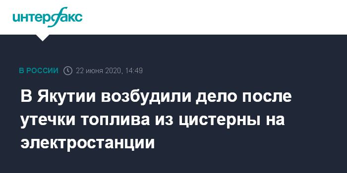 Москва. 22 июня. INTERFAX.RU - Следователи возбудили уголовное дело поcле утечки 4 тонн топлива из цистерны дизельной электростанции АО "Сахаэнерго" (входит в "РусГидро") в селе Аргахтах Среднеколымского района Якутии. Об этом сообщает прокуратура республики.