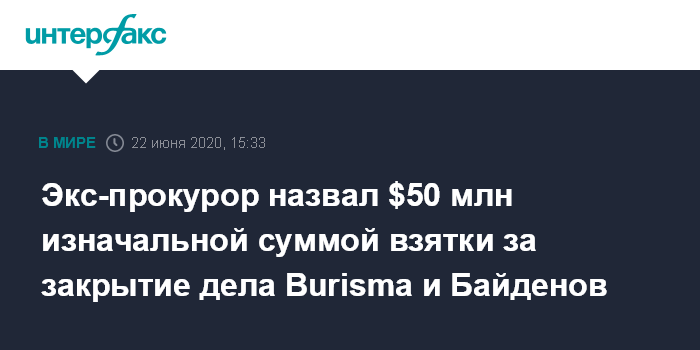 Экс-прокурор назвал $50 млн изначальной суммой взятки за закрытие дела Burisma и Байденов