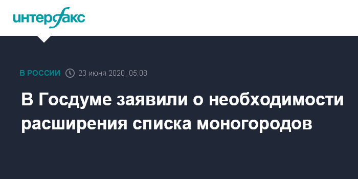 По мнению Кравченко, расширять список моногородов нужно в соответствии с запросом регионов. По данным экспертного опроса о состоянии монозависимых территорий, проведенного Госдумой в мае 2020 года, 40% респондентов высказались за увеличение их количества, пишут "Известия".