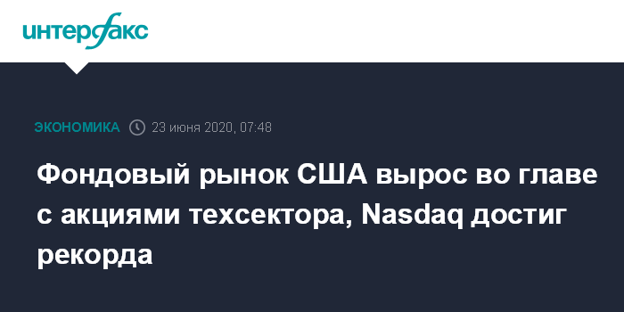 Москва. 23 июня. INTERFAX.RU - Американские фондовые индексы повысились по итогам торгов в понедельник, несмотря на волатильное начало дня, при этом Nasdaq Composite достиг рекордного уровня закрытия, чему способствовал рост акций технологических компаний.