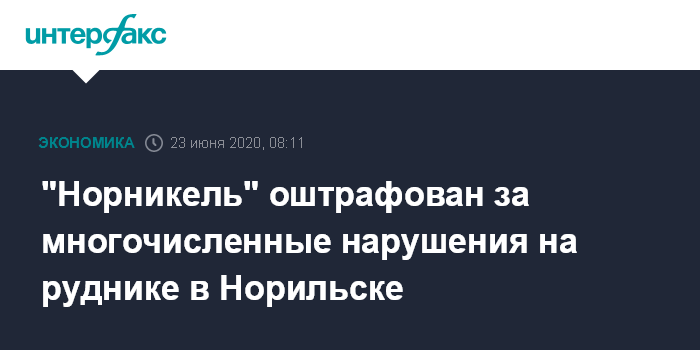 "Норникель" оштрафован за многочисленные нарушения на руднике в Норильске
