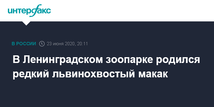 Москва. 23 июня. INTERFAX.RU - В Ленинградском зоопарке родился детеныш редкого львинохвостого макака, сообщает пресс-служба зверинца.